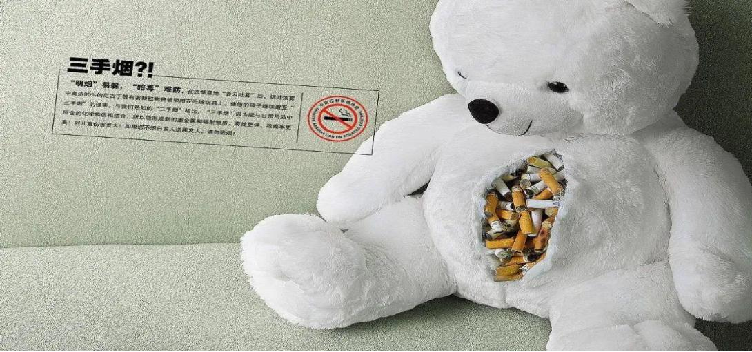 “三手烟”是指附着在衣服、墙壁、地毯、家具甚至头发和皮肤等表面的残留烟草烟雾,所含的有毒成份包括氢氰酸、丁烷、甲苯、砷、铅、一氧化碳以及超过十种高度致癌的化合物。