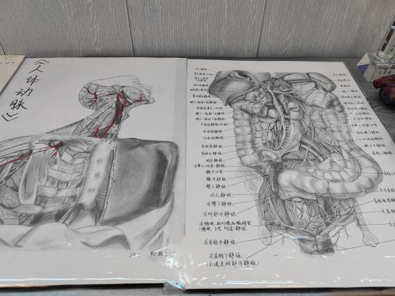 在教务处老师的认真评审下,解剖绘图大赛圆满落幕,最终评选出一等奖两名、二等奖三名、三等奖五名。此次大赛的参赛作品线条细腻、结构精准,将解剖结构演绎得栩栩如生,不仅展现了扎实的专业功底,更融入了独特的审美创意;而在这一张张精美的图纸背后,凝聚着同学们无数个日夜的心血,为了还原每一根血管的走向、每一块肌肉的纹理,她们上课认真听讲,细致观摩局模,课下反复查阅图谱、推敲细节,用手中的画笔丈量着医学的严谨与神圣。