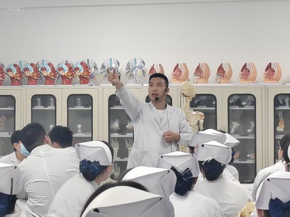 实验室里,老师正带着同学们围着解剖模型,耐心地讲解着每一个细微的结构。随着老师的指导,大家在复杂的局模纹理中寻找着关键的结构,力求将书本上的平面图谱转化为脑海中立体的认知。